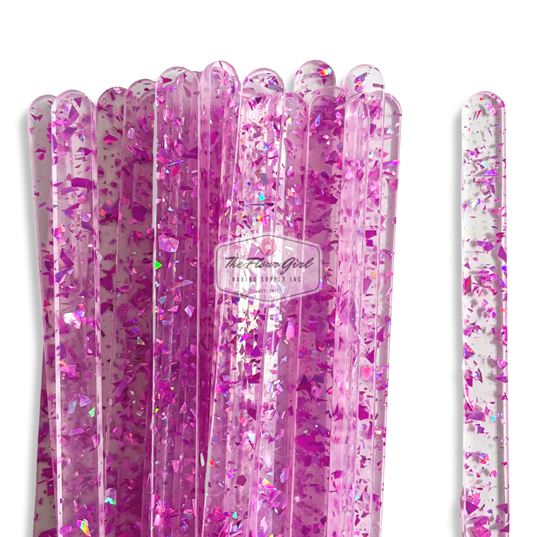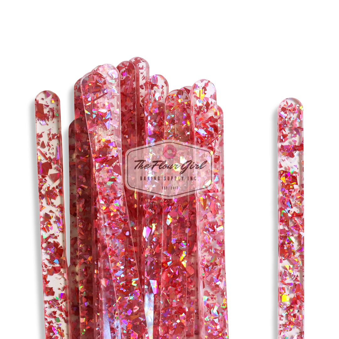 Cakesicles don't have to be boring! Add a pop of colour and jazz up your cakesicles, ice cream popsicles, cookie dough pops and more with food-safe chunky glitter acrylic popsicle sticks. Sticks are compatible with each cakesicle mold sold in our shop. Each colour option comes with 24 or 48 popsicle sticks. Available in 5 colours