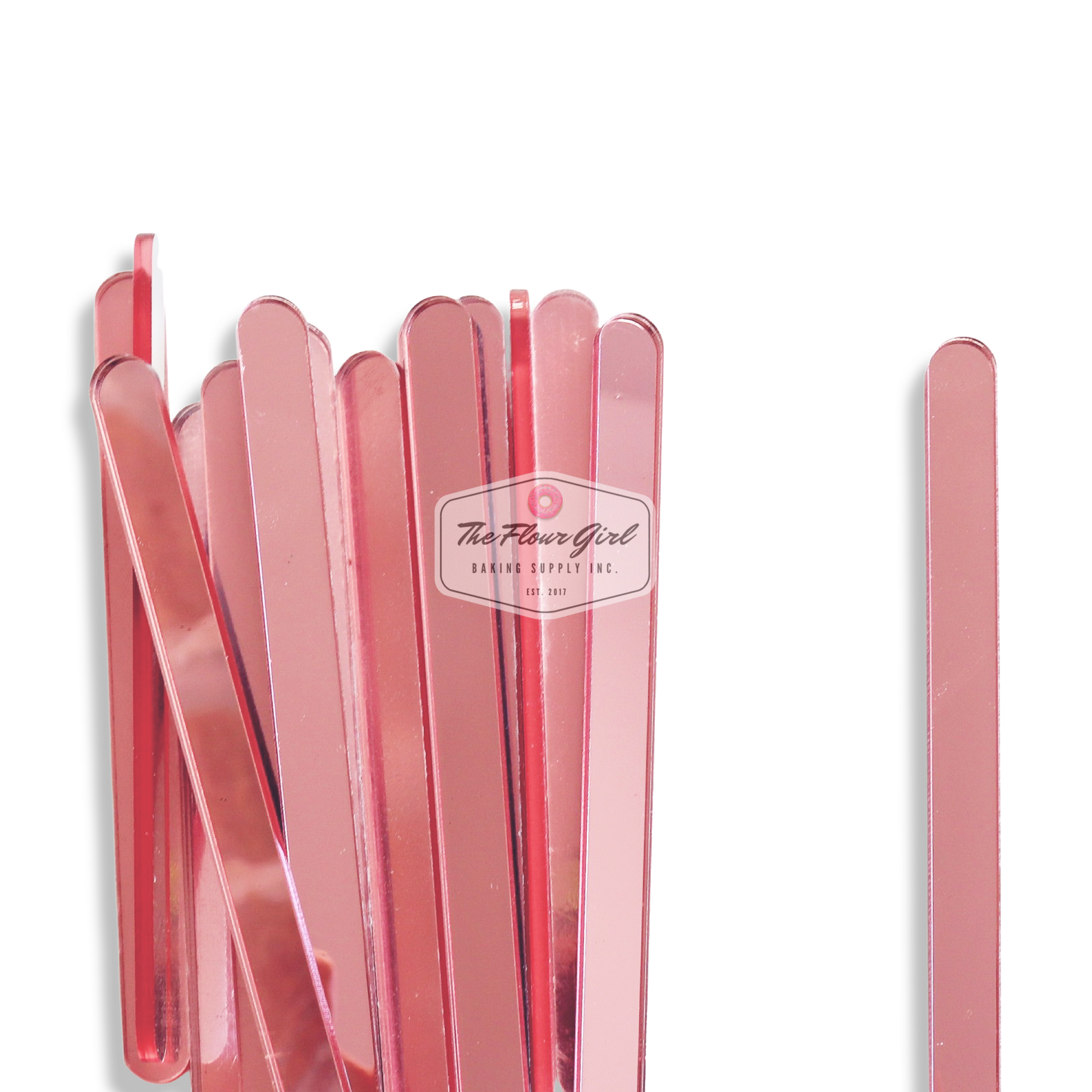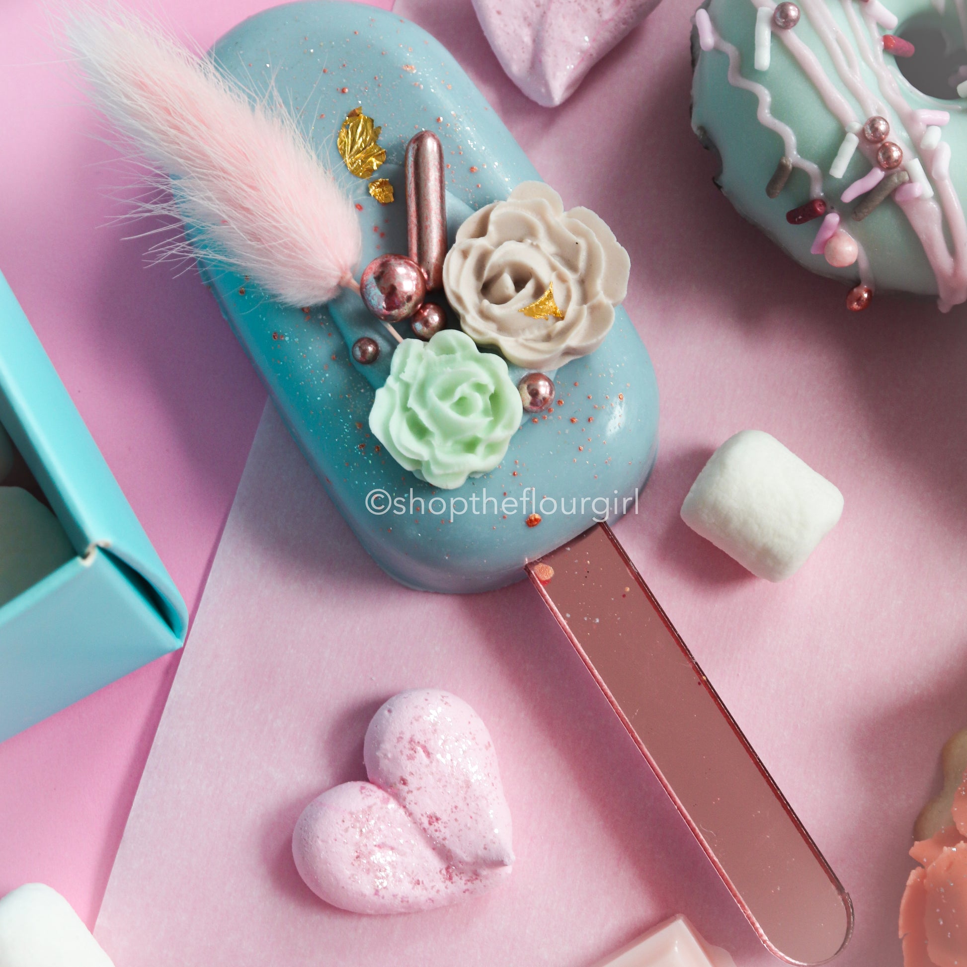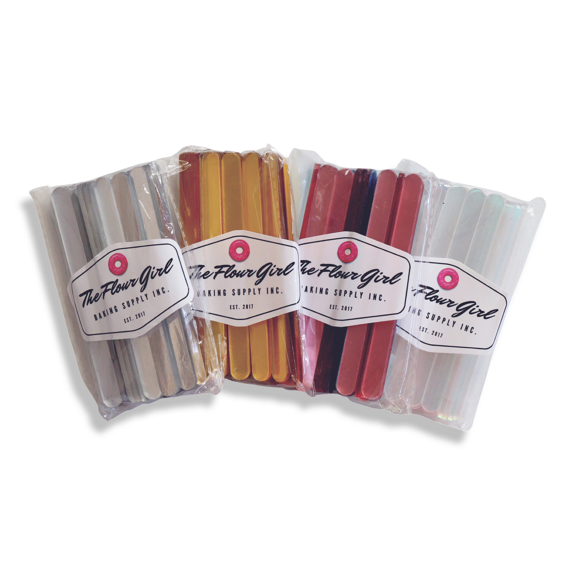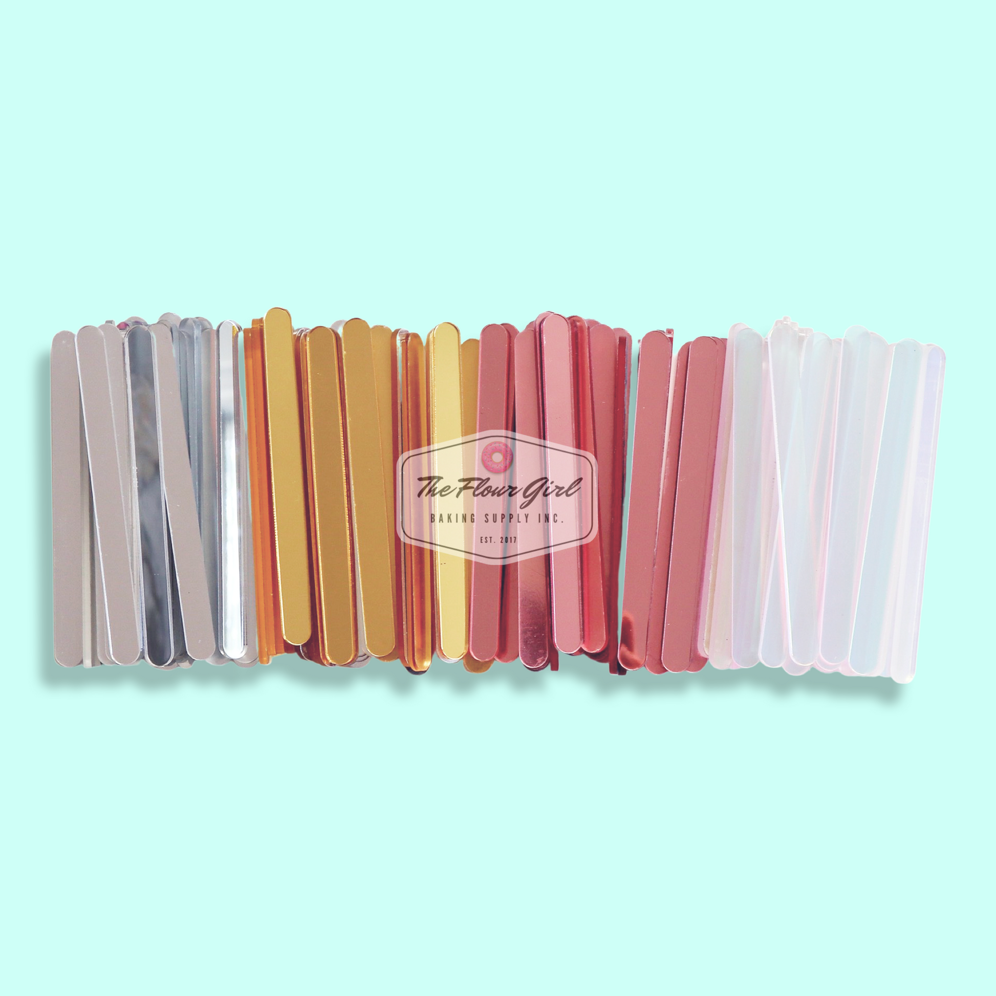 Cakesicles don't have to be boring! Add a pop of colour and jazz up your cakesicles, ice cream popsicles, cookie dough pops and more with food-safe mirror-like metallic acrylic popsicle sticks. Sticks are compatible with each cakesicle mold sold in our shop. Each colour option comes with 24 or 48 popsicle sticks. Available in 4 colours