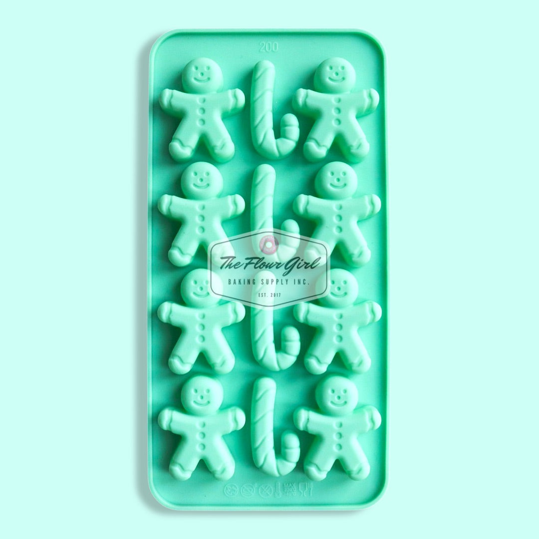 This mini Christmas gingerbread man and candy cane mold can be used to make mini chocolate decorations and toppers for cupcakes, cookies, cake bars, cakesicles, donuts and more! Each mold is made of food-grade silicone and is dishwasher, oven (up to 400°F), microwave, and freezer safe!