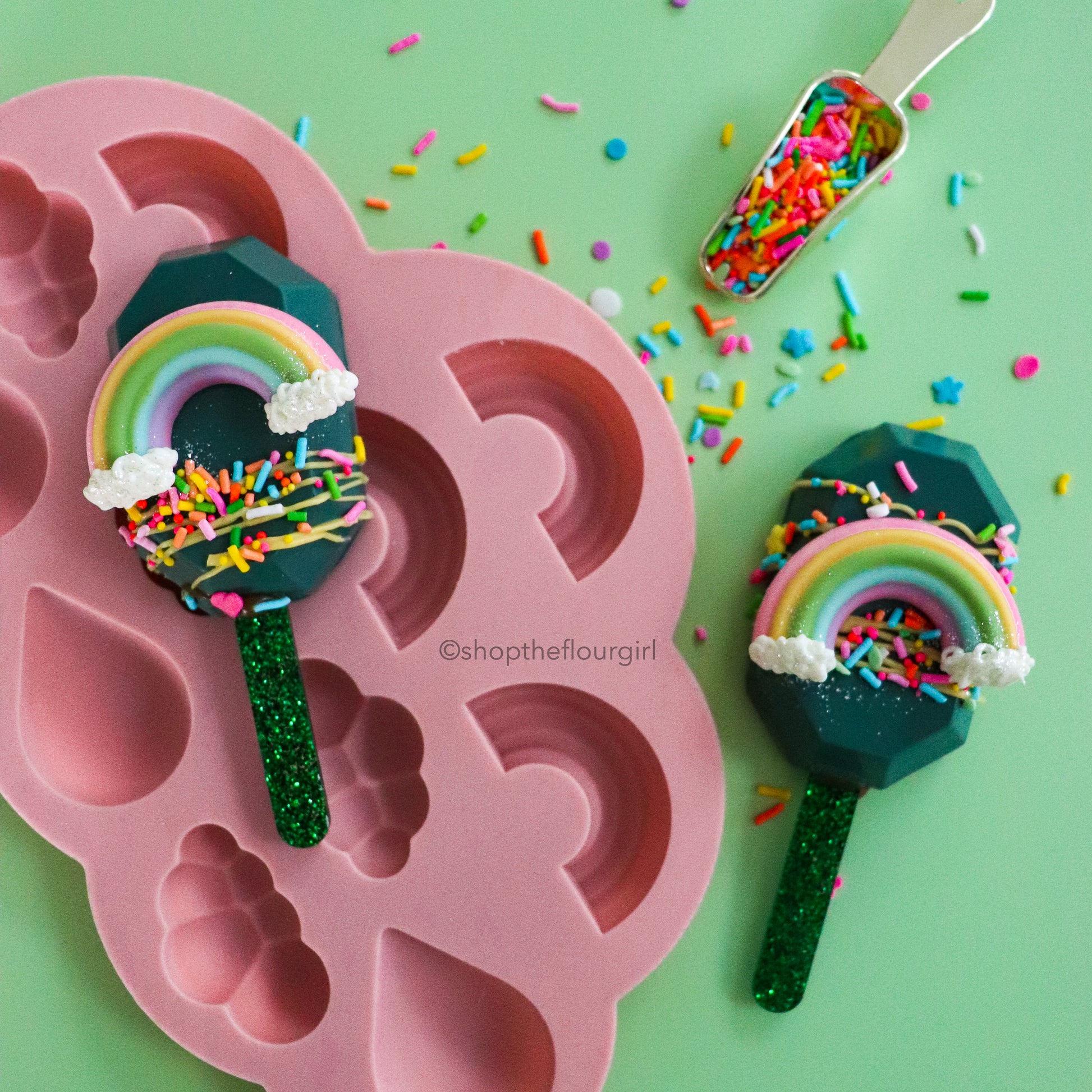 This 12-cavity mini chocolate bar mold can be used to make mini cloud, raindrop, and rainbow decorations for cupcakes, cookies, cake bars, cakesicles, donuts and more! Fill the mold with chocolate, isomalt, fondant, or use it to make gummy candy! Each mold is made of food-grade silicone and is dishwasher, oven (up to 400°F), microwave, and freezer safe!