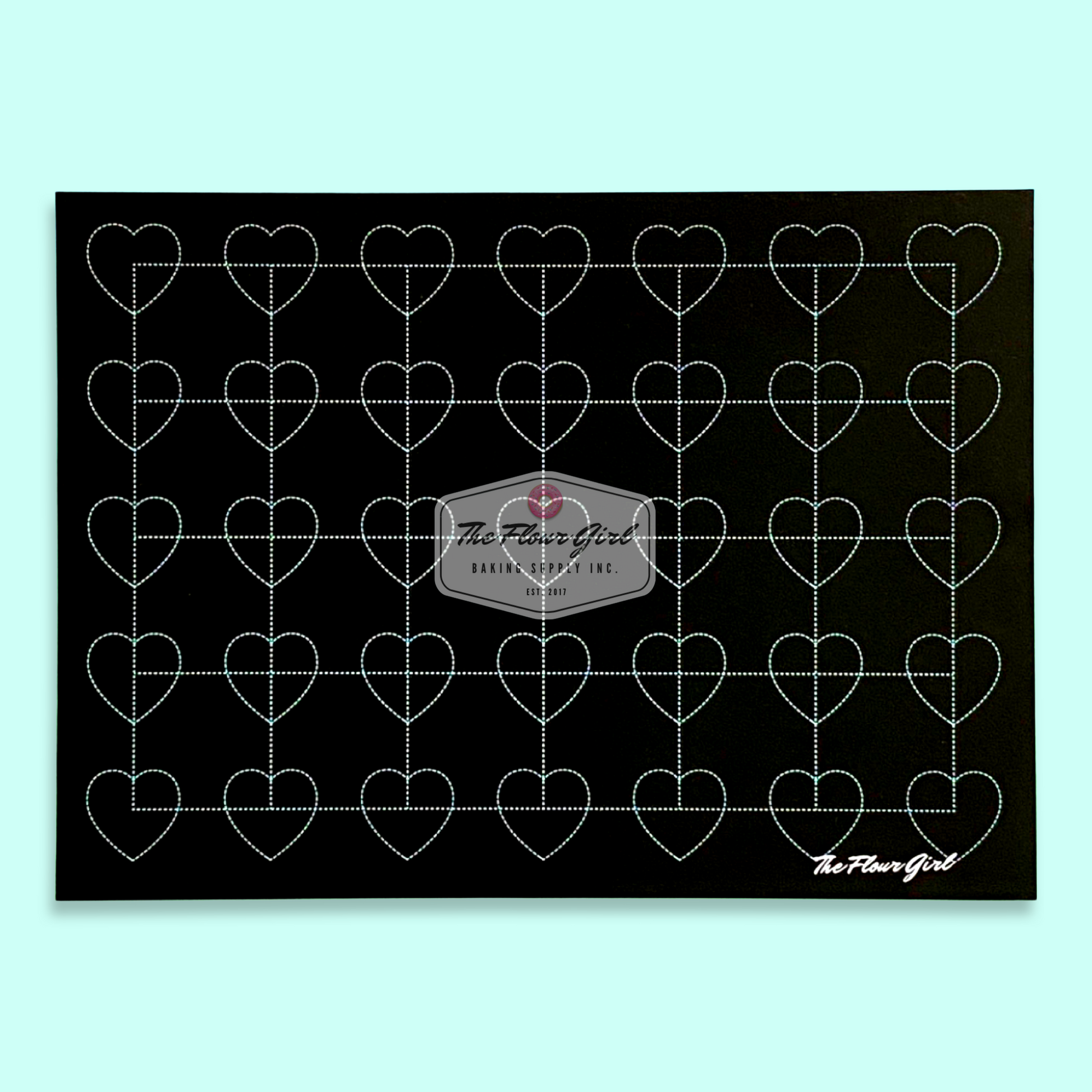 These versatile and reusable silicone-coated fibreglass mats are useful as a non-stick surface for multi-purpose use: French macarons, cookies, breads, choux pastry, meringues, even cooked foods! Cooled macarons peel right off! Each mat is made with durable food-grade silicone that can withstand freezing temperatures all the way up to 450°F. Fun pre-drawn templates (circles, bears, and hearts) make piping cookies and macarons easy! Not to mention, they are super easy to clean.