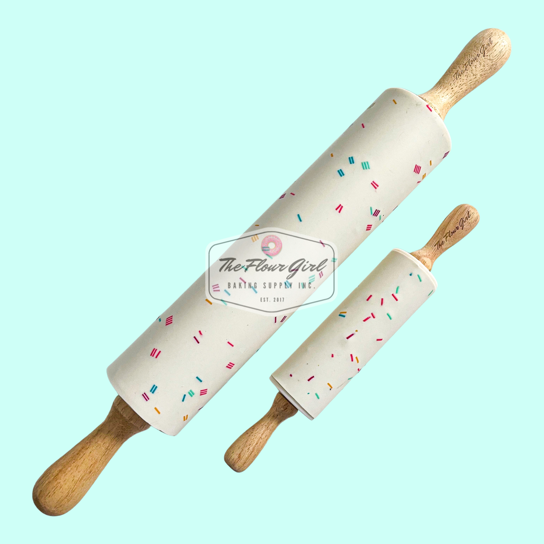 Sprinkles on a rolling pin? Yes please! The silicone non-stick surface makes rolling dough, crusts, fondant, and gumpaste stress-free! Just a light dusting of flour is needed. Each rolling pin is made with high-quality food-grade silicone with durable engraved wooden handles. The set is perfect for large and small projects. The large and small size option also makes it fun to use along with your kids! The silicone material also allows quick clean up and drying. Recommended to hand wash and air-dry.