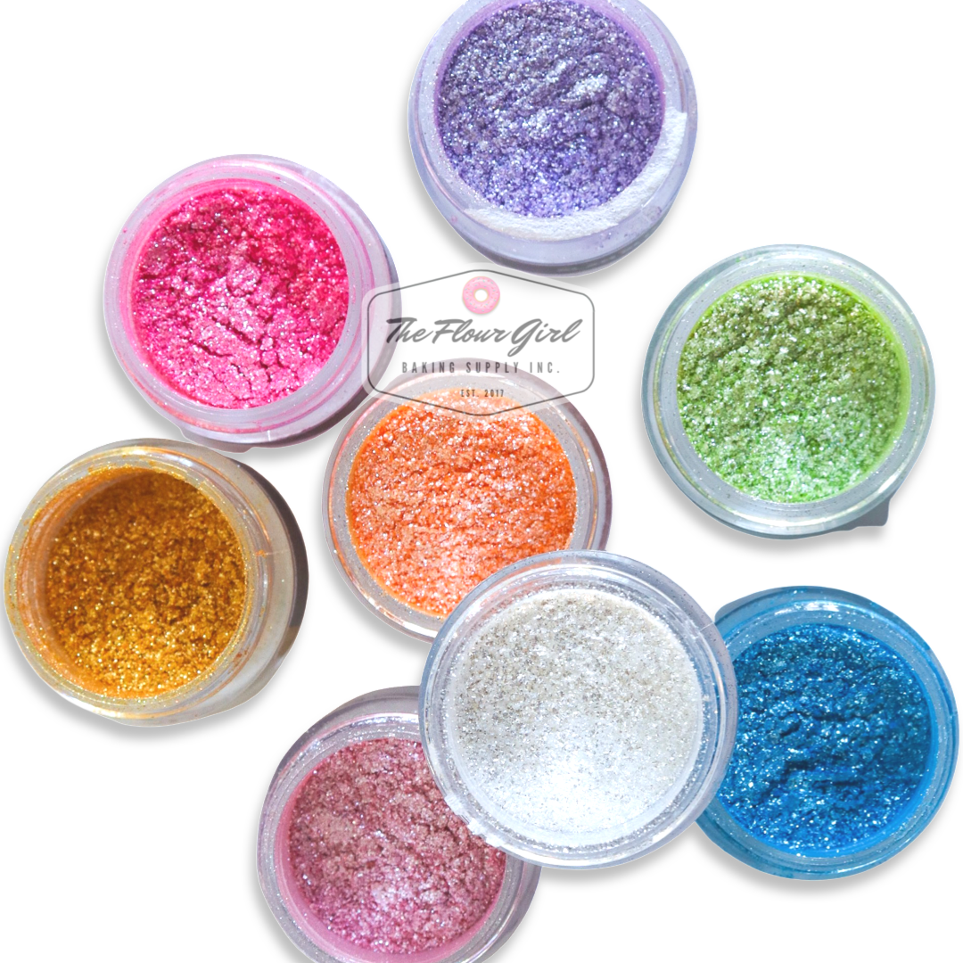 Ingredients: mica-Based Pearlescent Pigment, Dextrose, FD&C Artificial Food colouring. Gluten free.