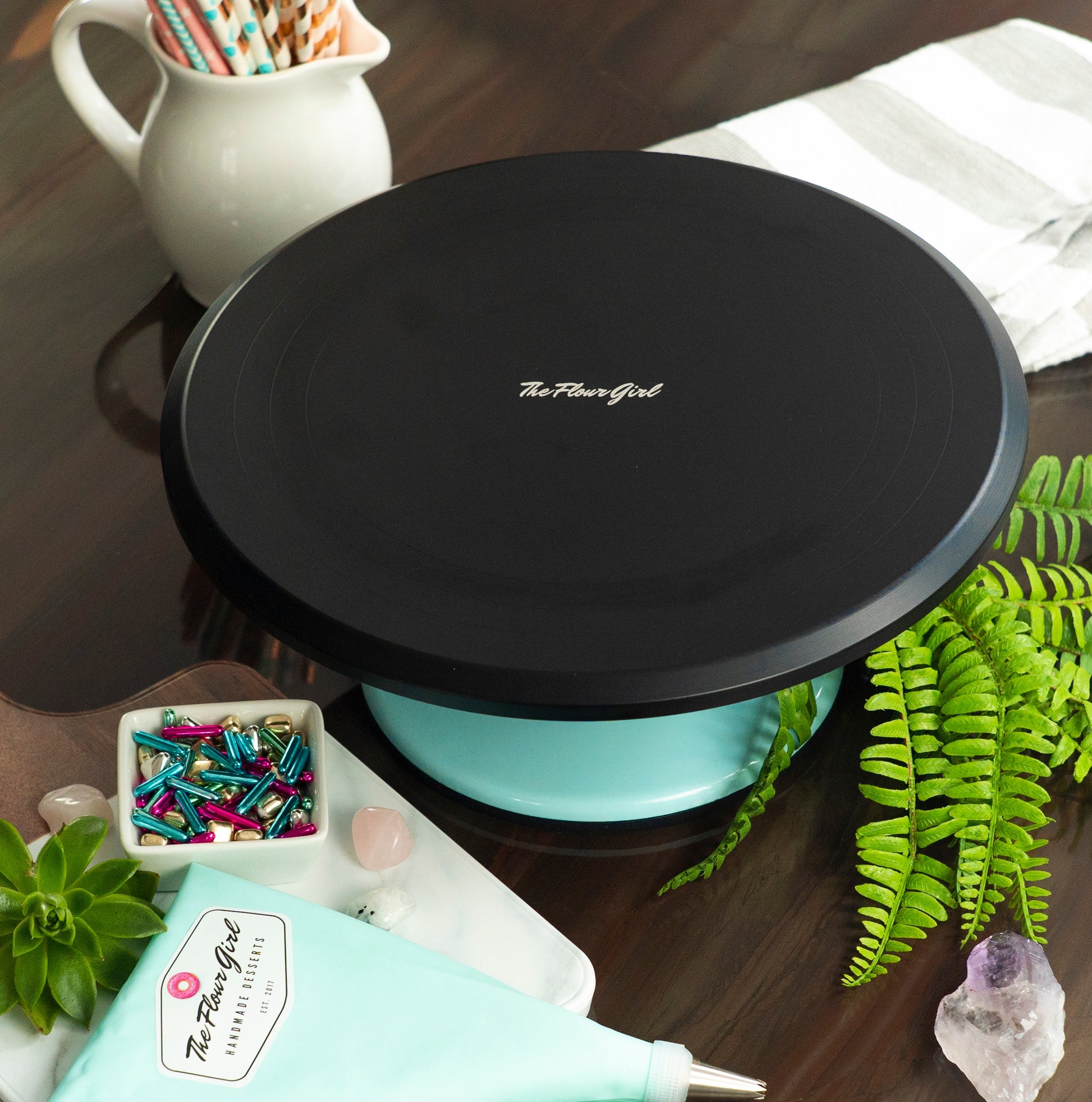 The turntable is an essential tool for easy cake decorating and display! Designed for aesthetics and functionality, the metal body provides stability and durability. Not to mention, it spins like a dream! Stainless steel ball bearings allow for smooth rotation with reduced rotational friction for easier use. Non-slip silicone base helps secure the turntable to the countertop surface while decorating. Each turntable comes with a FREE non-slip silicone mat to prevent cake boards from sliding while in use on top of the turntable!
